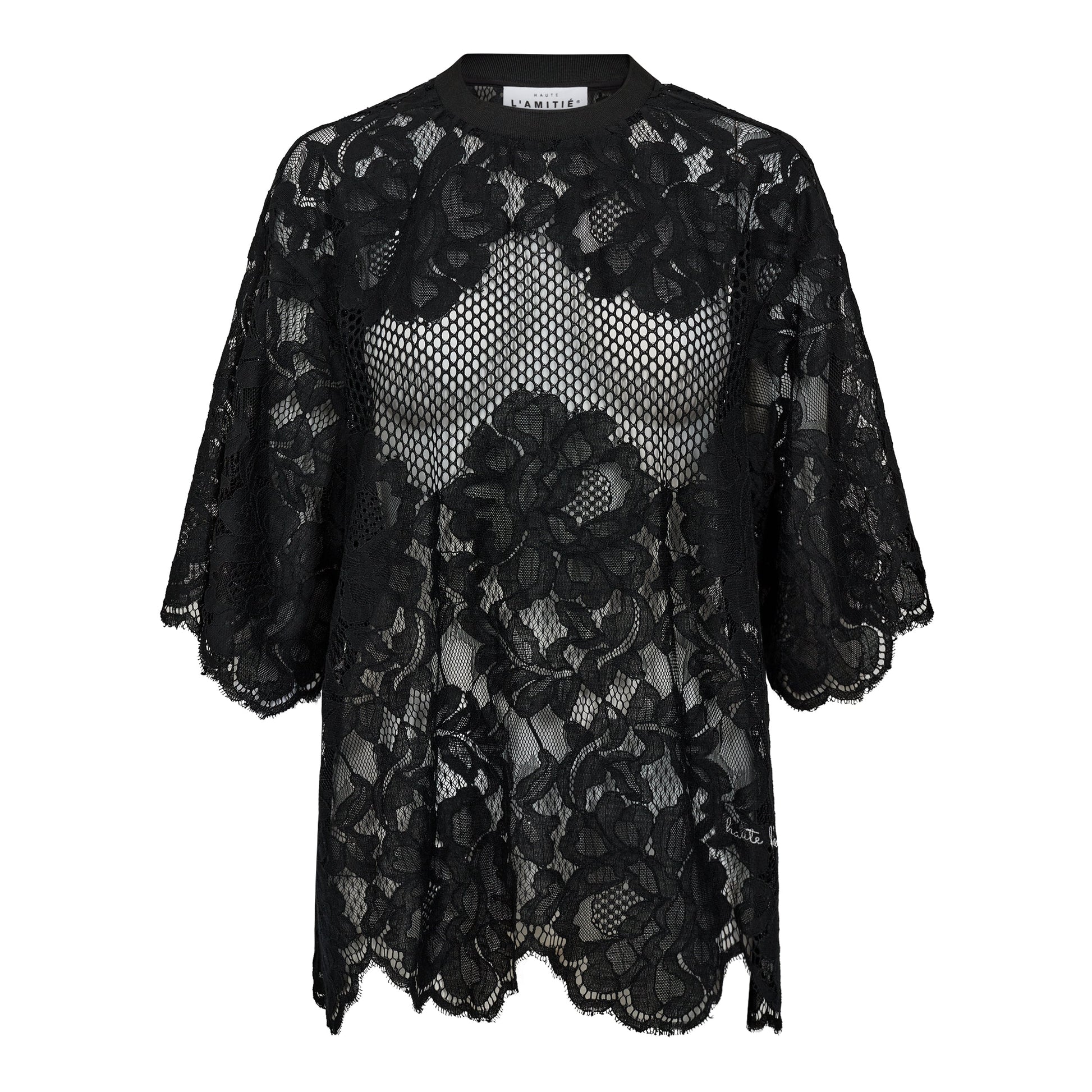 l'Haute Amitié Curvey Lace Hem Tee - Black